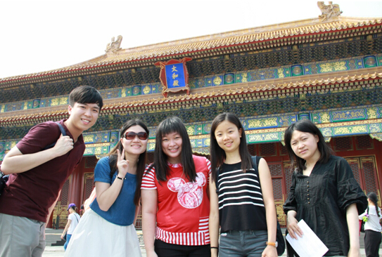 中午12点半同学们吃过午饭稍作休息,我们便开始了下午的旅程。我们的第一站就是北京最具盛名的景点—故宫。在盛夏之际,故宫的游客依旧络绎不绝。香港的老师同学对于这次故宫之行十分期待,这是他们第一次参观故宫,第一次走过天安门广场。按照前一天的分组,我们根据电影、传统、北京话、胡同以及饮食分成的五个小组分别行动。在北航同学的带领下,香港城大的老师同学们愉悦的参观了故宫的各个宫殿。同学们互相交流彼此对文化差异的见解,对比香港与北京的方方面面,十分尽兴。