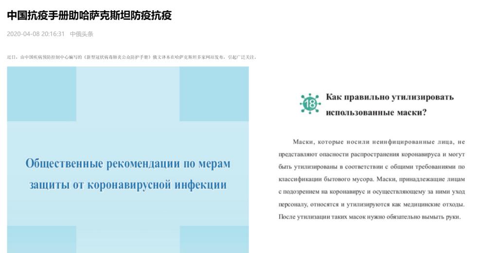 王悦老师本学期日常承担本科及硕士俄语课程教学,每周都有不小的备课及网络授课任务。但疫情就是命令,就是责任,王悦深知,这项工作不但关系到全球疫情防控,同时是我国国际责任与担当的体现。因此接到此任务,王悦毫不犹豫的答应下来,并利用了两天时间,不舍昼夜,出色的完成了俄文版手册的编译工作。由王悦老师编译的俄文版一经推出已经开始在多个俄语国家得到广泛推广,包括俄罗斯、乌克兰、哈萨克斯坦,得到了多国主流媒体的宣传报道。