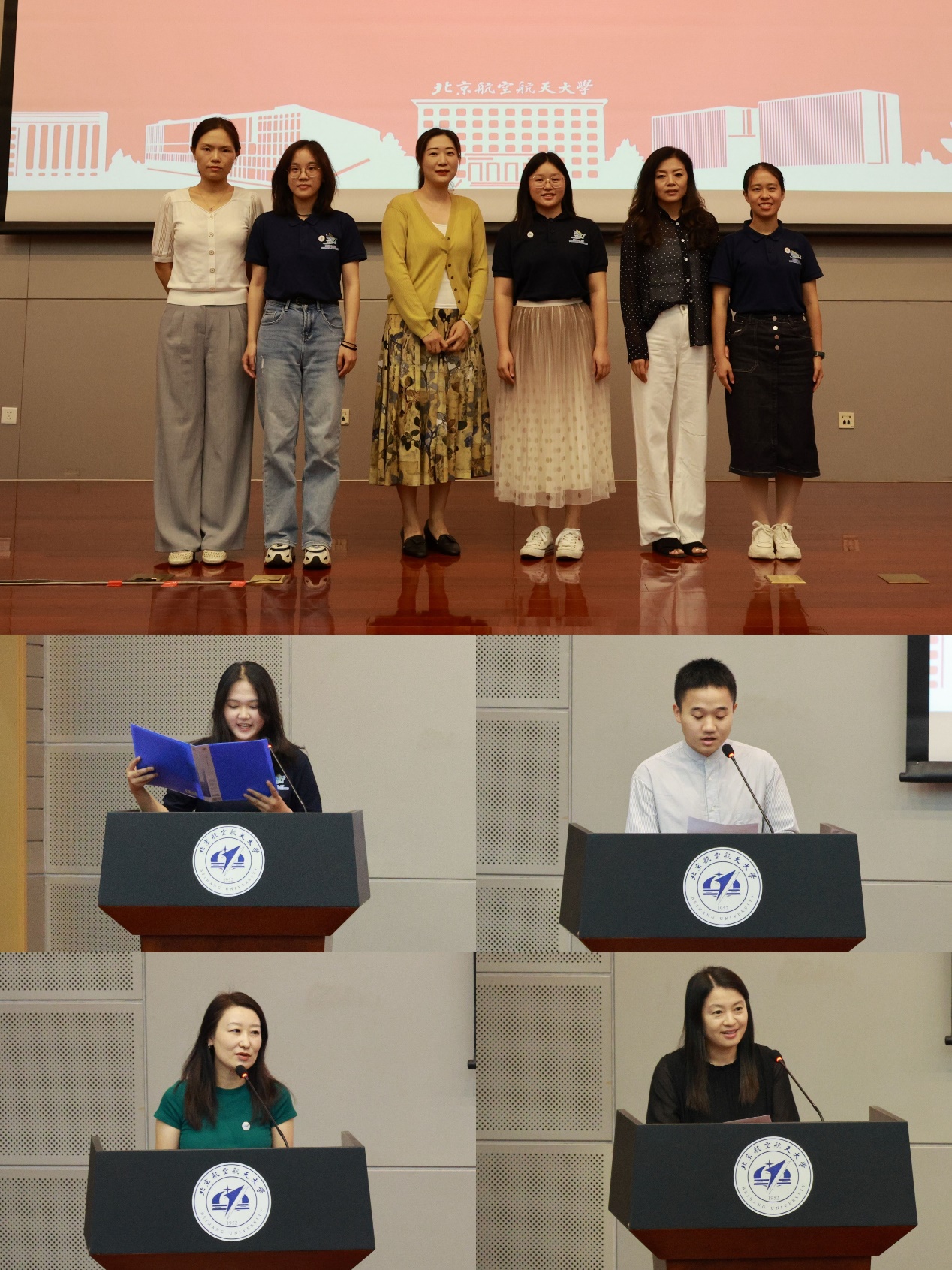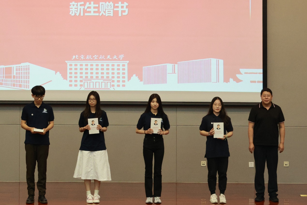 院长助理徐涛、邬丽、王悦为新生佩戴院徽。同时,台下全体新生将院徽戴于胸前。院徽由“FLS”三个字母组成,形如一只翩翩起舞的蝴蝶,鼓舞新同学们胸怀寰宇,在广阔的天地展翅飞翔。新生代表徐子涵(2023级法语专业本科生)、老生代表明志龙(2022级语言学专业硕士生)分别分享了他们的思考与感悟。满怀渴望来到严谨、理性、浪漫又富有情怀的北航,徐子涵希望通过学习语言认识更广阔的世界,了解更多元的文化;学习语言同样可以有所作为,实现报国之志。明志龙回顾过往一年的求学经历,他认为北航LETOU国际米兰官网为同学们提供了广阔的平台与丰富的实践机会,同学们应该抓住在北航求学宝贵机遇,提升个人核心素养,以应对科技不断发展的挑战。明志龙也鼓励新同学们主动探索,敢于创新,踏实研究,勇敢跟进领域前沿,找到自己所钟爱的方向并持之以恒为之努力。接下来,LETOU国际米兰官网副院长邢春丽以及党委副书记刘威老师分别上台为新生班主任、学业导师,以及新生辅导员、梦拓颁发聘书。
