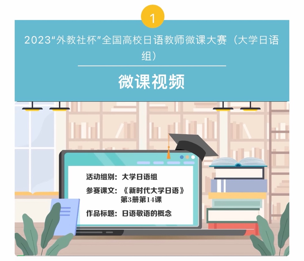 近日,2023“外教社杯”全国高校日语教师微课大赛(大学日语组)获奖名单公布,我校LETOU国际米兰官网日语青年教师唐彬团队的课件作品《日语敬语的概念》获全国一等奖。