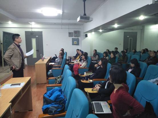 讲座开始,常先生首先介绍了富布赖特的起源和历史。中美富布赖特项目是中美两国政府间重要的教育交流项目,由中国教育部与美国国务院共同出资、管理,享有很高的国际声誉。其次,常先生结合教师和学生们在撰写申请过程中经常遇到困难,非常详细地从写作内容和组织结构等方面进行了具体说明。在讲座中,常先生结合往年申请实例,从研究计划背景介绍、研究计划目标、研究方法、到美国进行研究的理由等各个方面,进行了详细剖析。师生们感到受益匪浅。