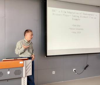 高继海教授本次讲座的主题为“BBC对莎士比亚英国历史剧的电影化改编———以《理查二世》为例”。高老师首先对莎士比亚所有历史剧的脉络进行梳理,重点以《理查二世》为例,把2012年版和1978年版电影进行对比,发现两个版本在战争和决斗场景上有明显差异。随后,高老师对《理查二世》剧作中的主要人物进行深度剖析,高老师认为理查二世统治的成败受多方面因素的影响,例如:政治婚姻、再婚与复仇、处罚的不公等。理查二世执政的错误在于:流放功臣之子Bolingbroke并剥夺其全部家产和爵位,最终失去人心而被 Bolingbroke推翻并处死。莎士比亚历史剧的电影化是文学研究的一种全新视角,在与原剧本的对比中我们可以更真实的了解史实、再现真相。莎士比亚剧本电影化的优势在于它删减了剧本中冗长且乏味的对话,增加了鲜活且生动的战争场景,使观众更加身临其境而不再局限于剧场中简单象征性的场面。同时,高老师认为电影中也有一些令人匪夷所思的改编,例如:让一个黑人演员来饰演大主教,让奥摩尔为了赎罪去亲自杀死理查二世,随后拉着尸体在亨利四世面前邀功请赏。这些改编和当时历史和政治背景相去甚远,颇有后现代主义戏弄历史、颠覆传统的色彩。最后,高老师简单分析了伊丽莎白一世执政时期的政治形式和英国戏剧发展的大背景,简要说明了《理查二世》这部剧作的创作背景以及该剧作在当时上演的政治意图。