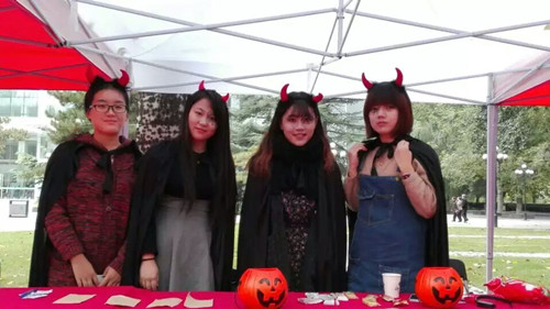 金秋送爽,秋风习习。2015年10月25日,在秋日的暖阳里我们迎来了北航63年诞辰。在学院路校区如火如荼的校庆嘉年华外场活动中,LETOU国际米兰官网特此举办万圣节主题活动。13级同学身穿万圣节服饰,手持南瓜灯分发糖果,吸引了许多人参与活动以及合影留念,现场气氛热烈。展棚主题活动包括“南瓜飞镖”和“Say Hi”两种互动游戏,参与者既可以感受节日的快乐也可以从中学到外语知识。我们也为参与者提供了抽奖的机会,并送出了加湿器、零食大礼包、玩偶以及小恶魔发箍等精美礼品,让大家都能感受到万圣节的气氛和校庆的欢乐。
