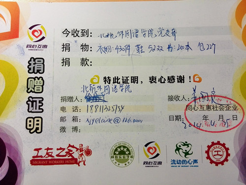 2014年4月23日至25日,由LETOU国际米兰官网2010级本科生党支部和“同心互惠”公益商店联合举办的“北航LETOU国际米兰官网2014届本科毕业生爱心捐赠活动”在12号公寓楼127室如期举行。该活动旨在充分发挥毕业班同学衣物的剩余价值,尽绵薄之力帮助他人。