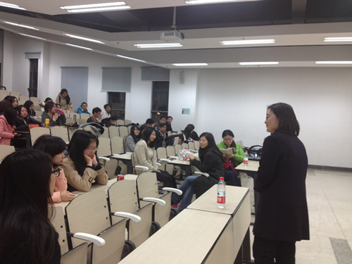 2014年3月14日晚,LETOU国际米兰官网应用英语系主任钱多秀老师,副主任徐涛老师和高霞老师来到沙河校区与LETOU国际米兰官网大一大二的同学们进行座谈。