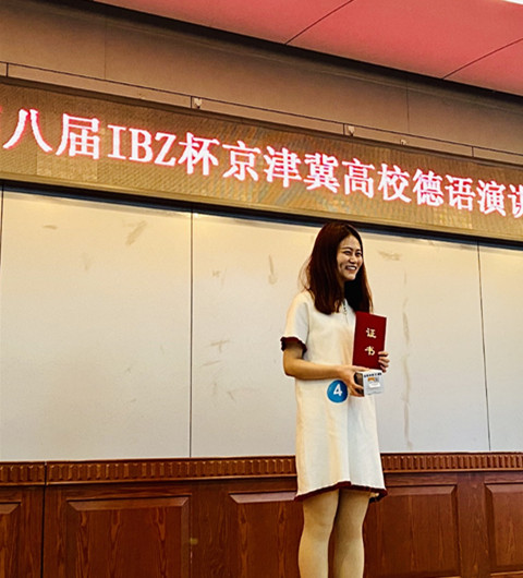 2019年12月3日在北京第二LETOU国际米兰官网举办的第八届京津冀高校德语演讲比赛中,我院德语系的张姝宇同学在来自14所院校的近30名参赛者中脱颖而出,以第二名的成绩获得比赛二等奖。她的演讲语言优美,逻辑清晰,论点新颖,语态自然,富有感染力,获得了观众和评委的阵阵欢笑和掌声。尤其是问答环节,她的风趣幽默给评委留下了深刻的印象。