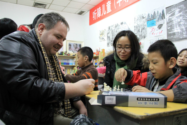下午2时,两党支部约40名支部成员来到海淀天云听力言语康复训练中心,为孩子们带来了礼物,并奉献出了时间和爱心。值得一提的是,北航外院的外教老师Devon也自愿投入到我们的组织中,奉献自己的一份力量。党员们自愿分成两组,一组负责康复训练中心的卫生清洁,另一部分负责陪伴孩子们。当看到孩子们自信的面貌和可爱的脸庞,我们的成员也被感染,分成不同小组陪孩子们度过了难忘的下午时光。跟Devon一起交流的小男孩十分怕生,语言又不通,一时显得十分羞涩。这时Devon努力用笔和夸张肢体语言和小男孩沟通,并且和他玩起了国际象棋,两人用纸笔的传递和无需言语的游戏度过了令人记忆深刻的特别时光。最后要分别时,小男孩主动微笑着同Devon握手,让我们见识到了孩子较快融入社会的能力。
